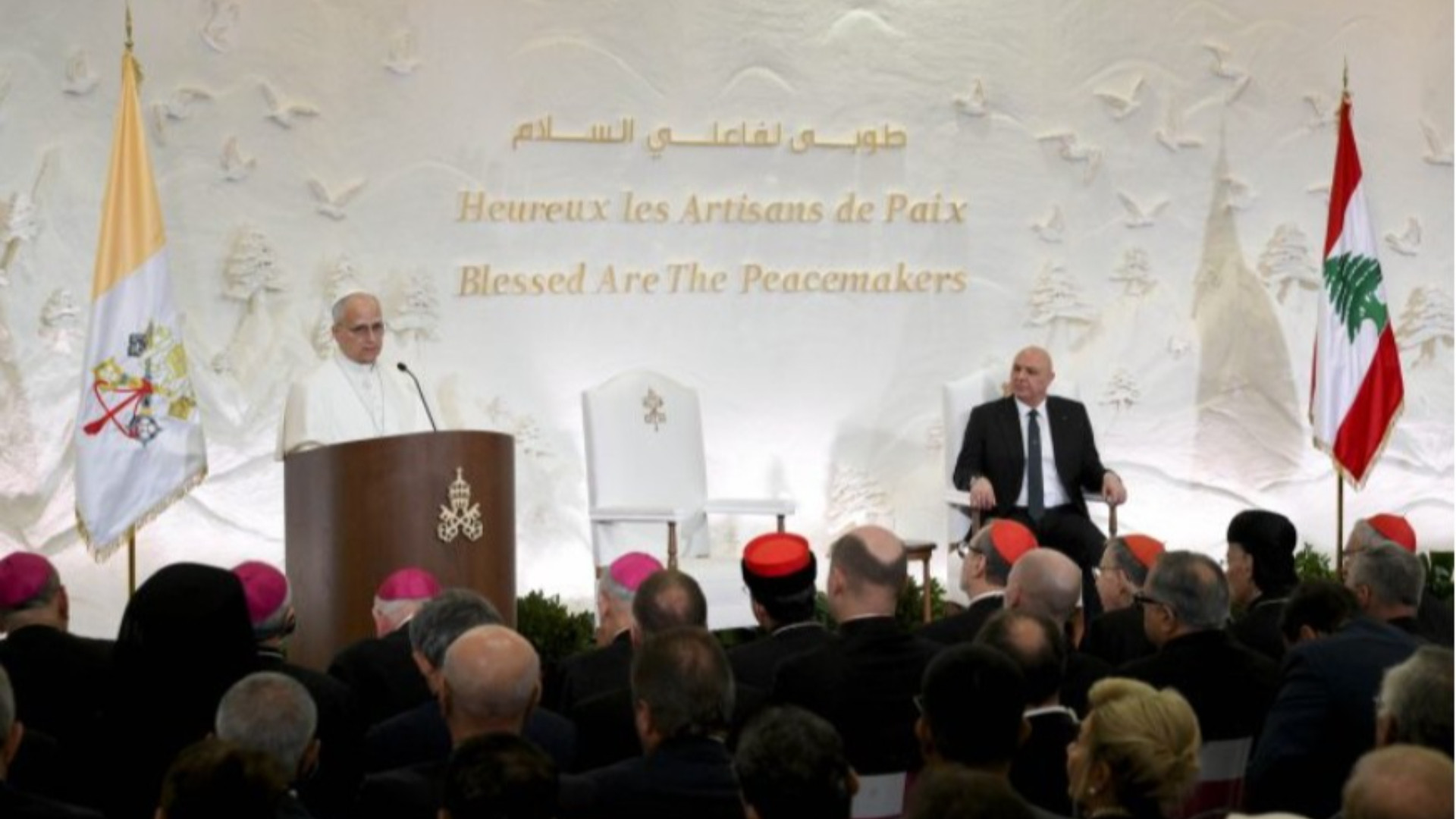 “Beati gli operatori di pace!”. E’ il saluto di Leone XIV al Libano, seconda tappa del suo viaggio apostolico che lo ha visto ieri - domenica 30 novembre - lasciare la Turchia per approdare nel Paese di cedri, ferito da una guerra ai propri confini. “È una grande gioia incontrarvi e visitare questa terra in cui ‘pace’ è molto più di una parola: qui la pace è un desiderio e una vocazione, è un dono e un cantiere sempre aperto”, l’omaggio del Papa, secondo il quale “vi sono milioni di libanesi, qui e nel mondo intero, che servono la pace silenziosamente, giorno dopo giorno”. C’è una parola, su tutte, che contraddistingue l’identità del Libano, preso a modello di tutti gli operatori di pace: “Siete un popolo che non soccombe, ma che, di fronte alle prove, sa sempre rinascere con coraggio. La vostra resilienza è caratteristica imprescindibile degli autentici operatori di pace: l’opera della pace, infatti, è un continuo ricominciare”.