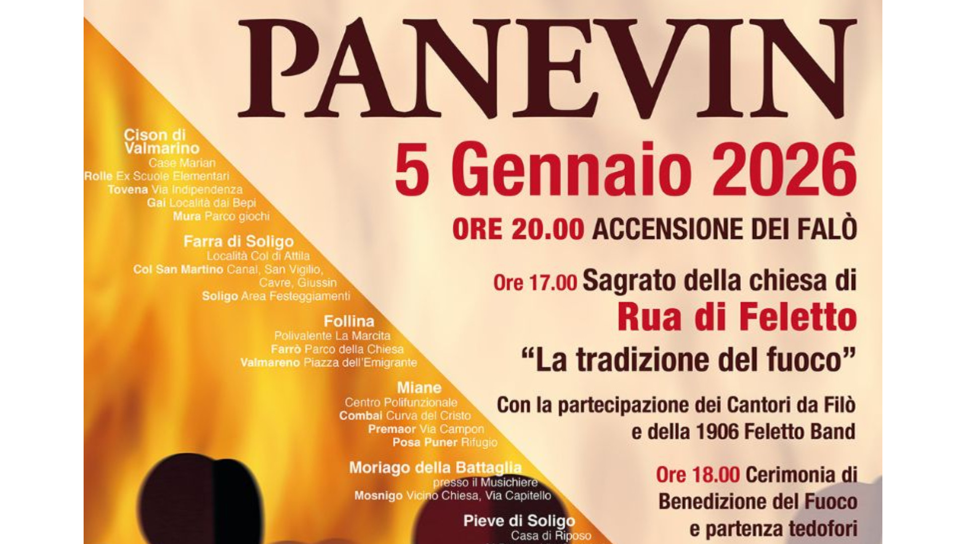 ATTUALITÀ E CULTURAPANEVIN 2026: lunedì 5 gennaio torna la benedizione del fuoco a Rua di Feletto04/01/2026